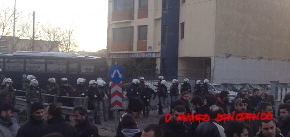8:40 Κλούβα των ΜΑΤ και αστυνομικές δυνάμεις έχουν δημιουργήσει κλοιό γύρω από το αμαξοστάσιο.