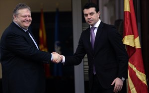 Μέλη του λεγόμενου «Παγκόσμιου Μακεδονικού Κογκρέσου» και του «Συλλόγου Παιδιών του Αιγαίου» υποδέχτηκαν τον Έλληνα υπουργό Εξωτερικών, Ευάγγελο Βενιζέλο, κατά τη σημερινή επίσκεψή του στα Σκόπια, με την ιδιότητα του προέδρου του Συμβουλίου Υπουργών Εξωτερικών της Ευρωπαϊκής Ένωσης.